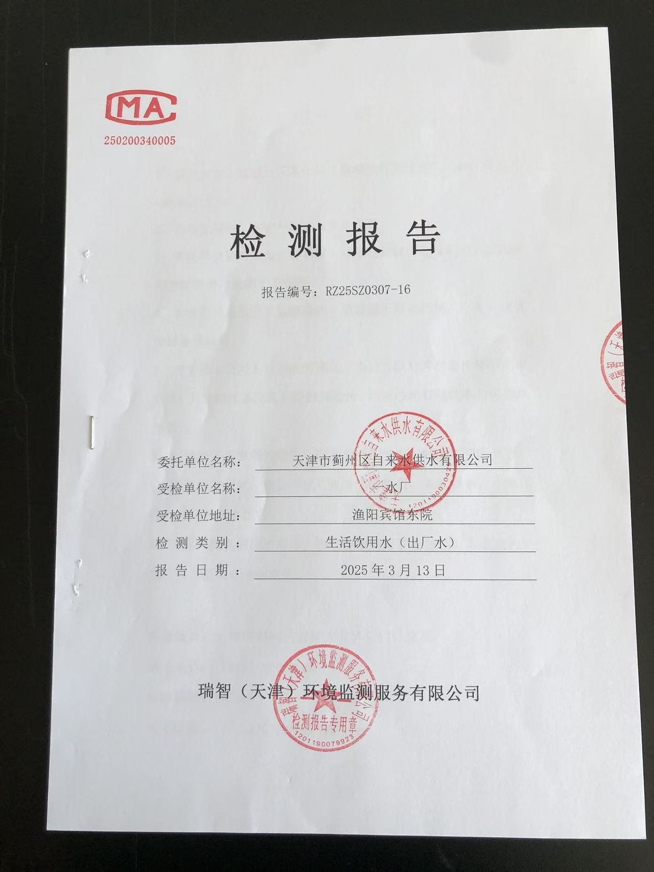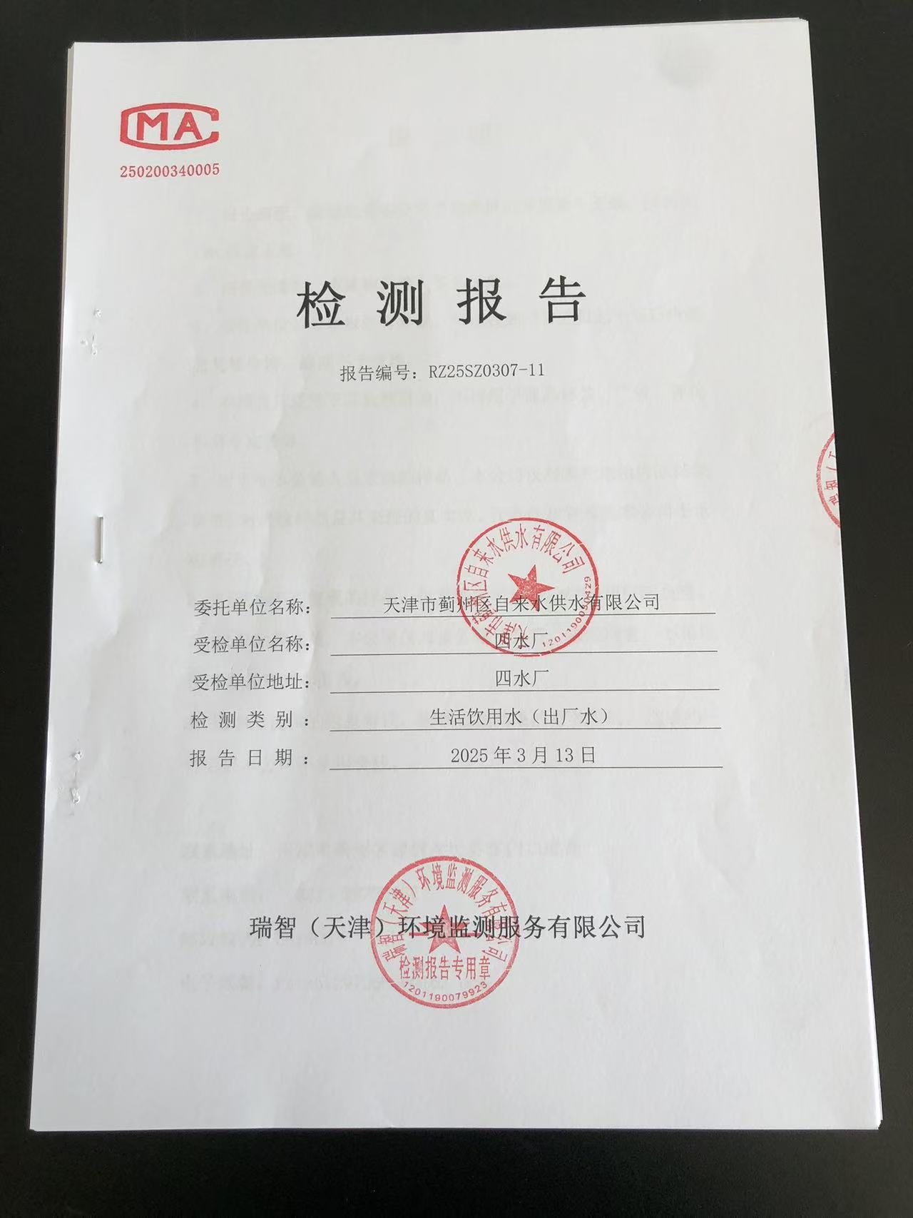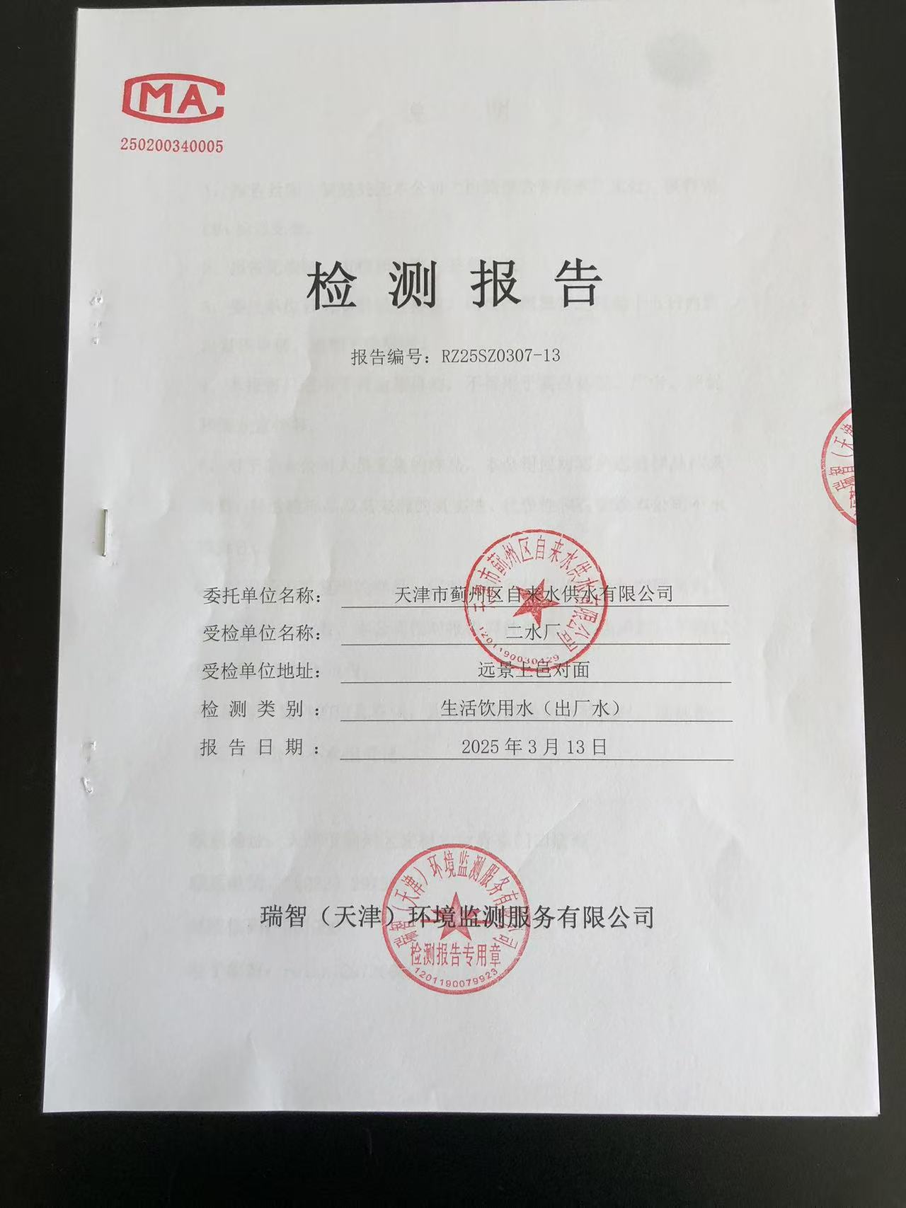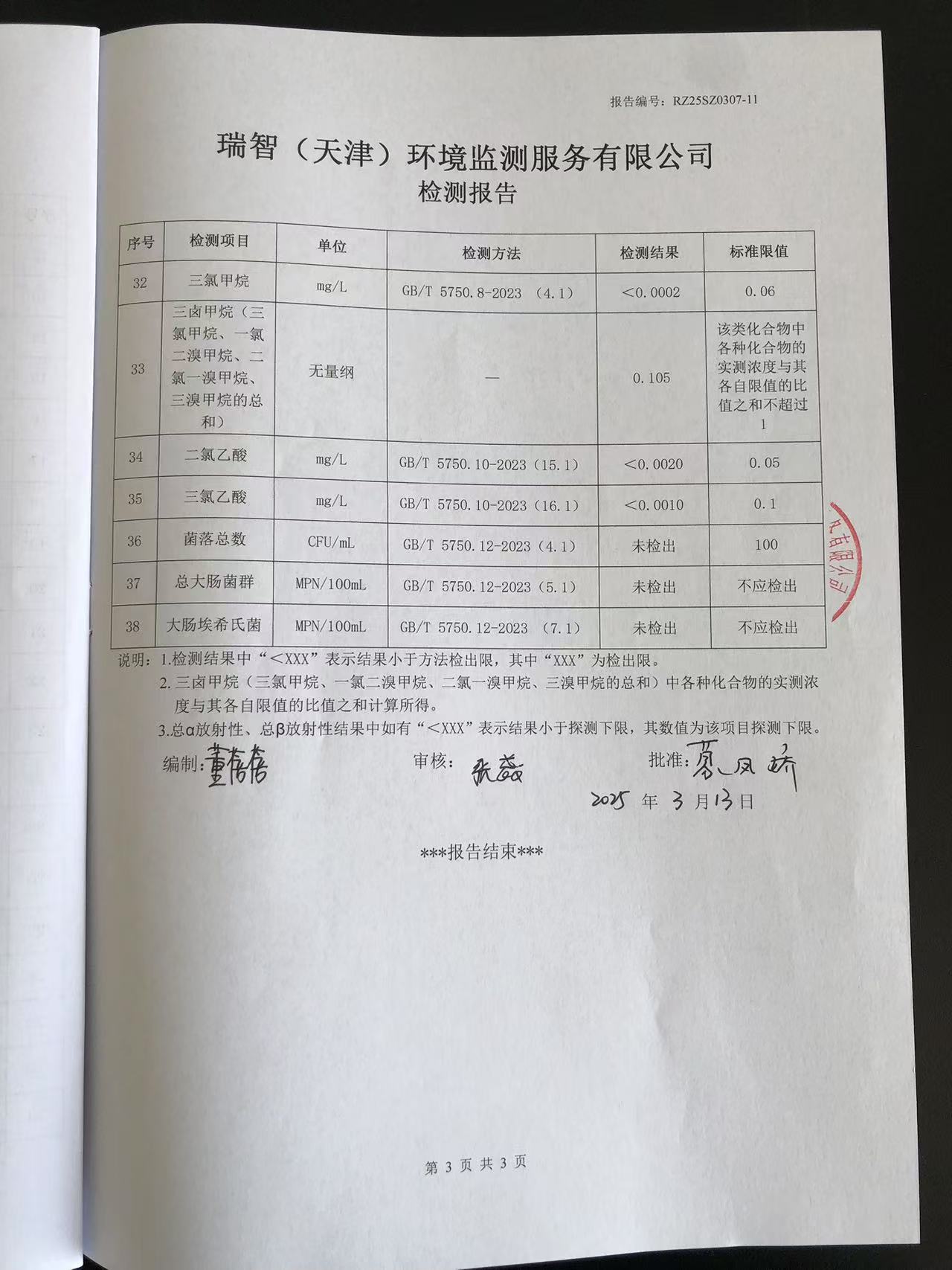 2025年3月份水質檢測報告