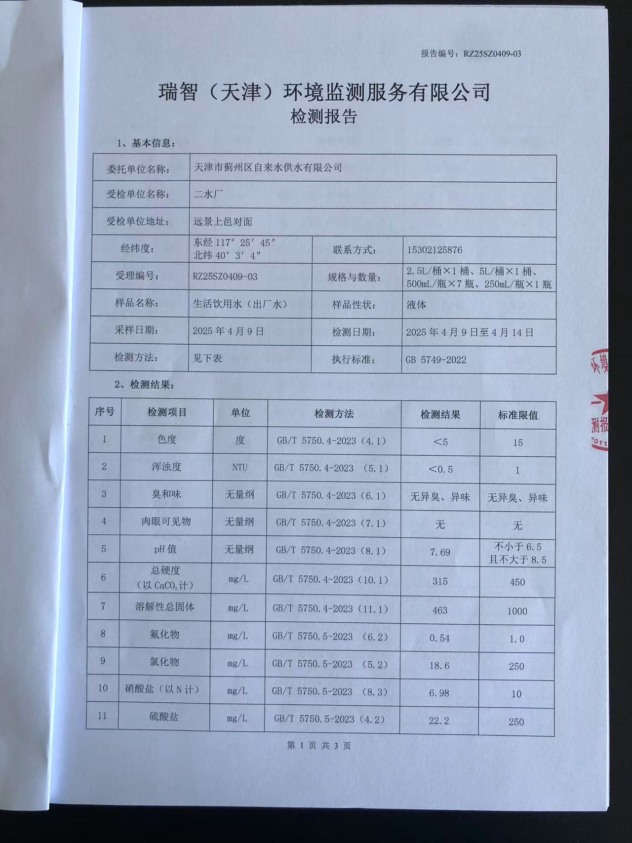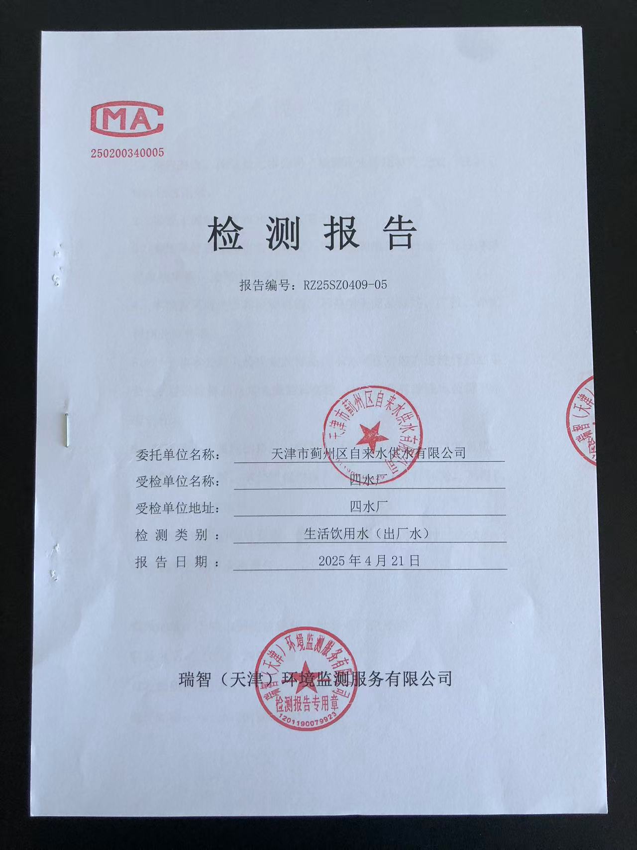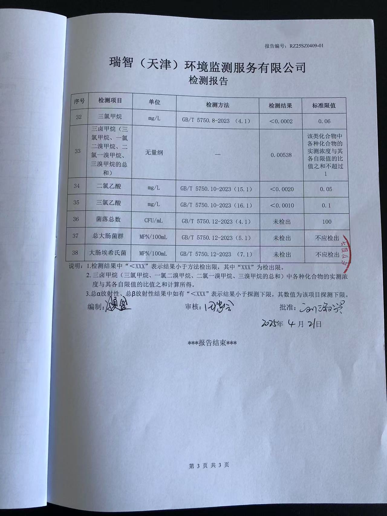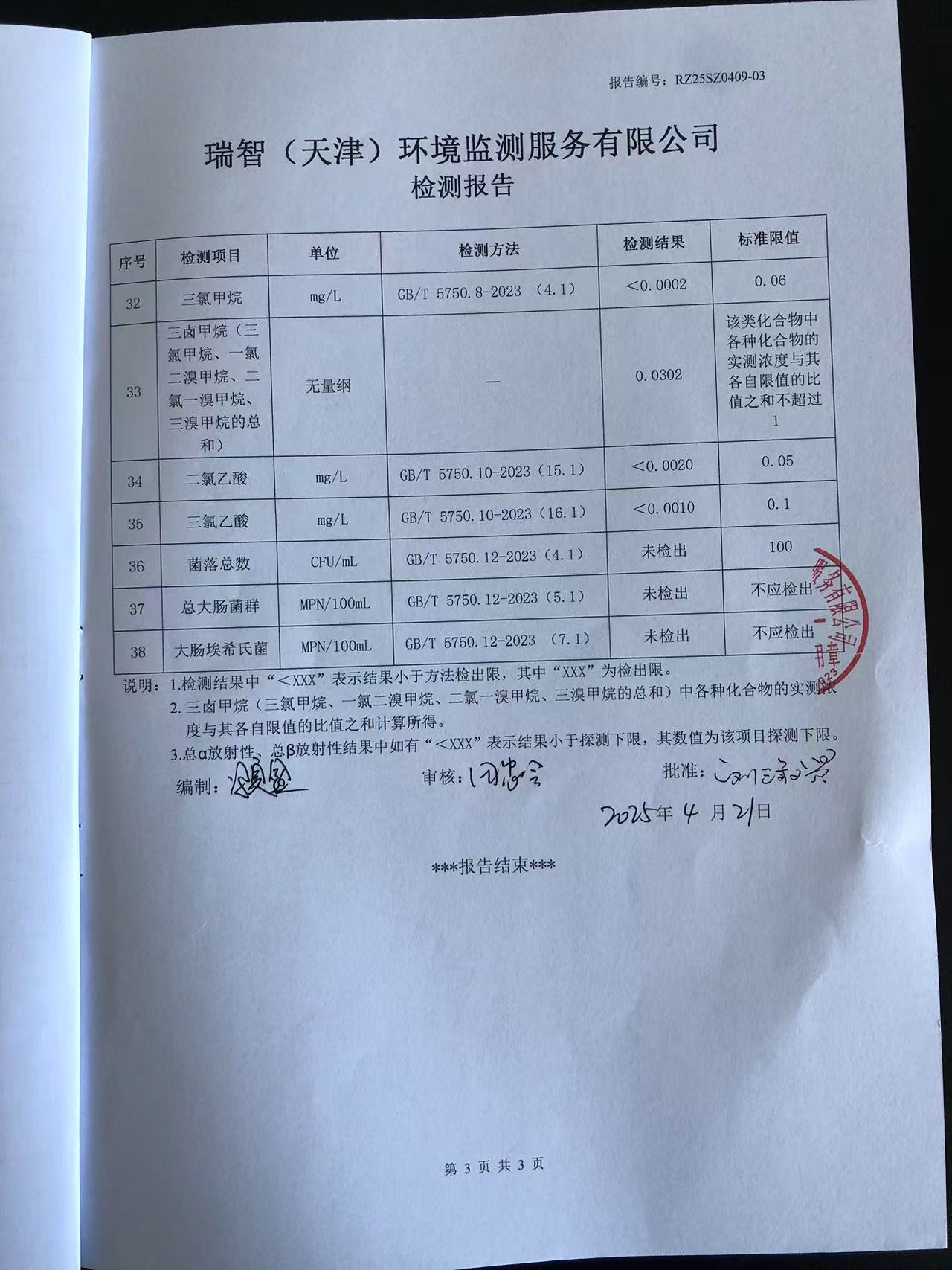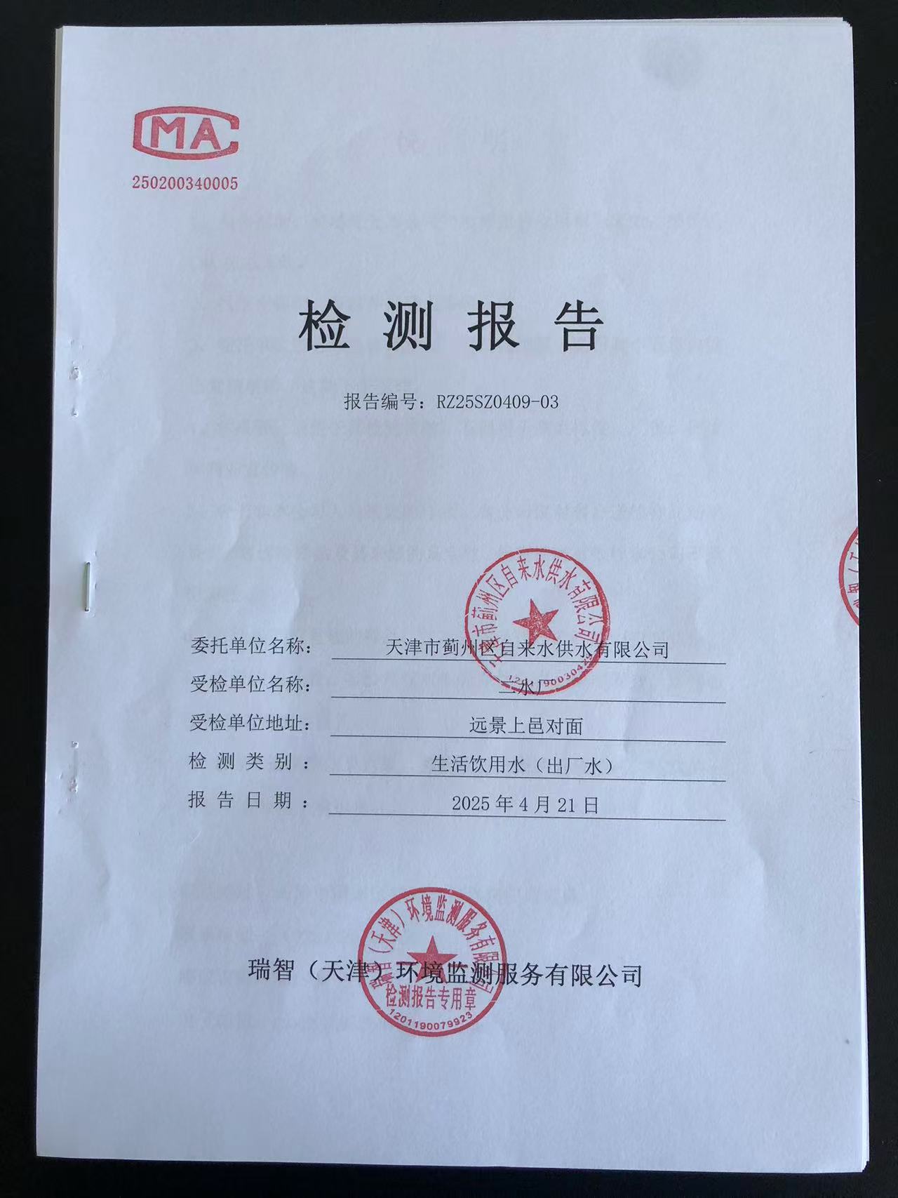 2025年4月份水質(zhì)檢測報告