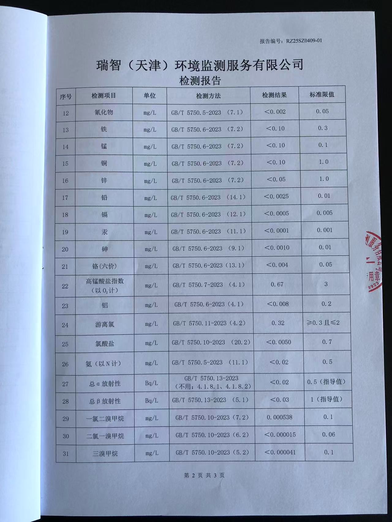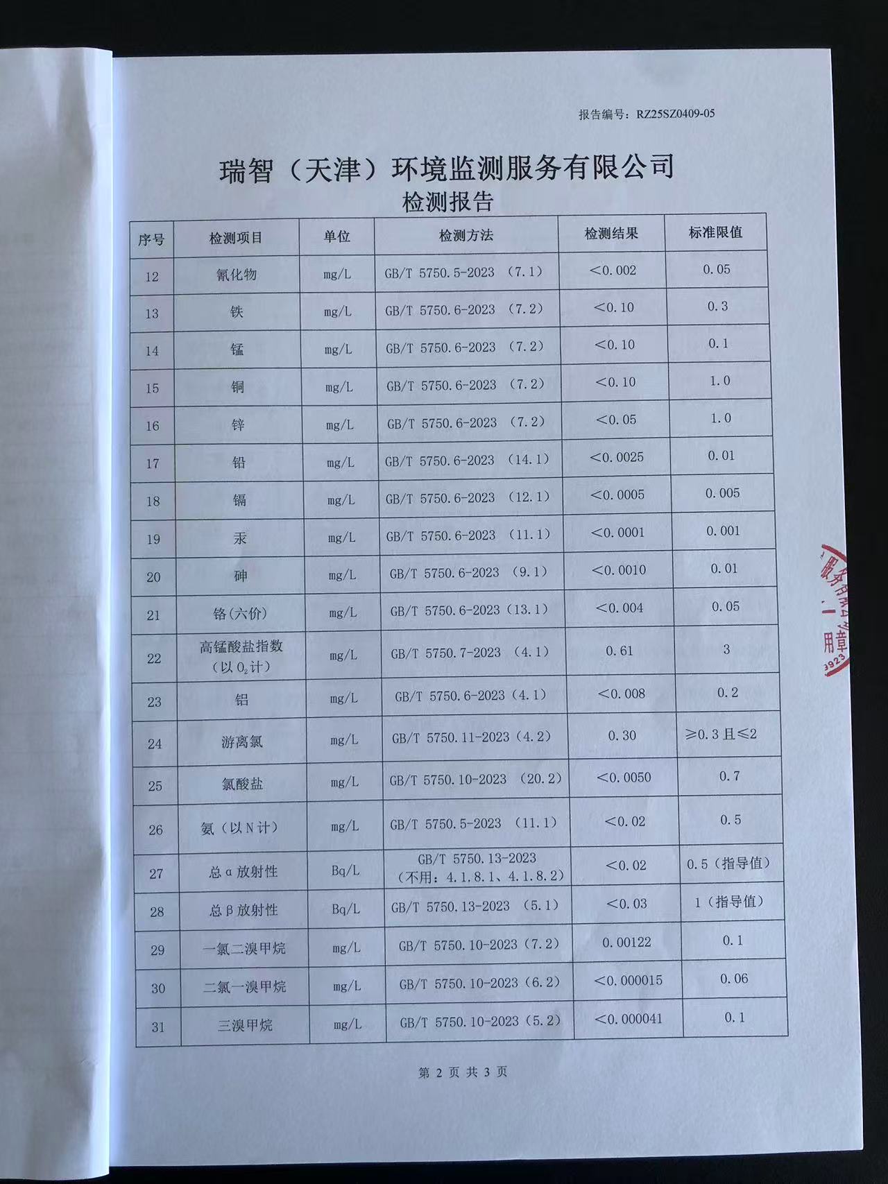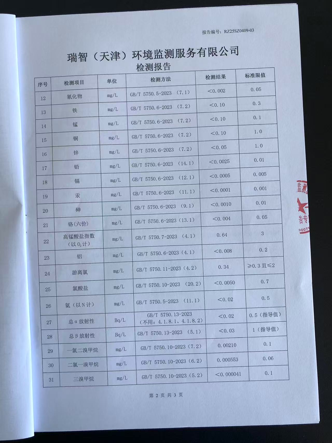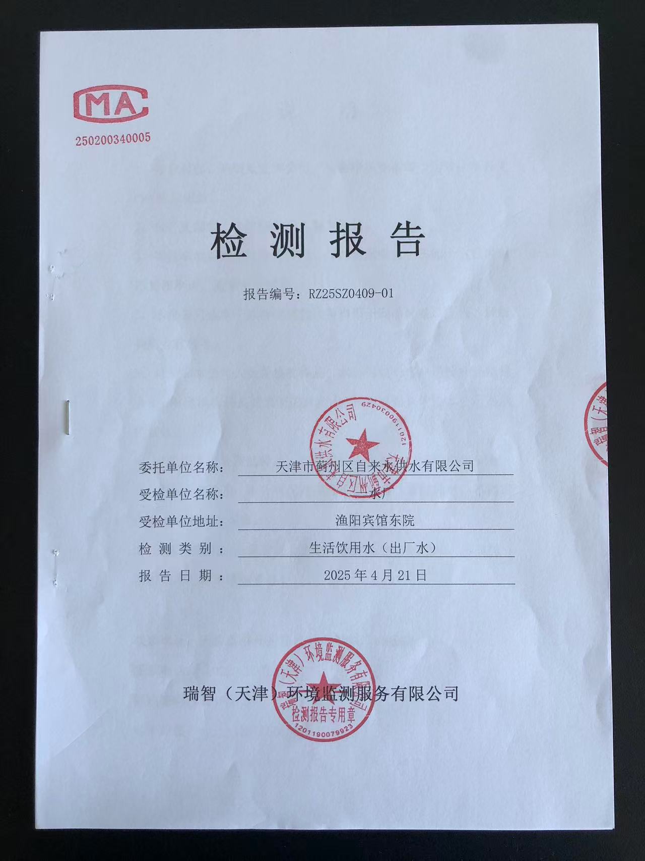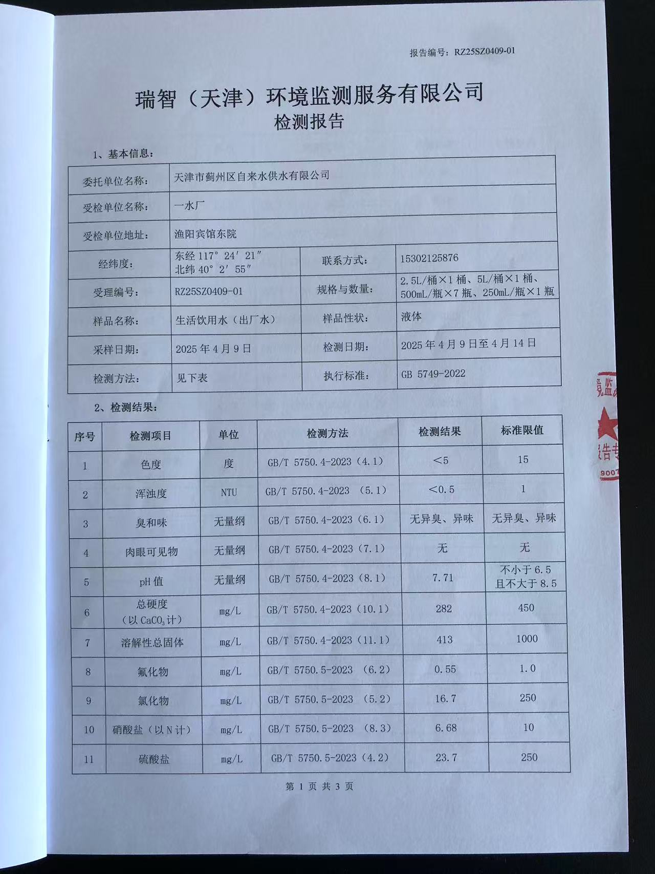 2025年4月份水質(zhì)檢測報告