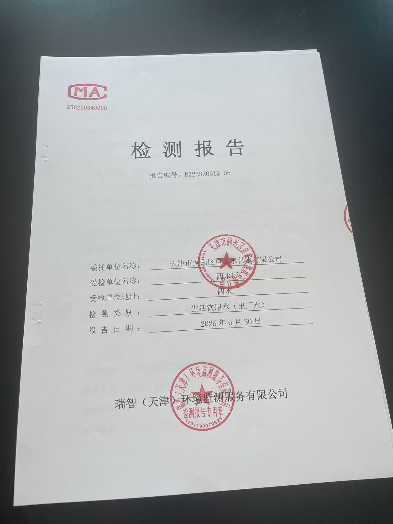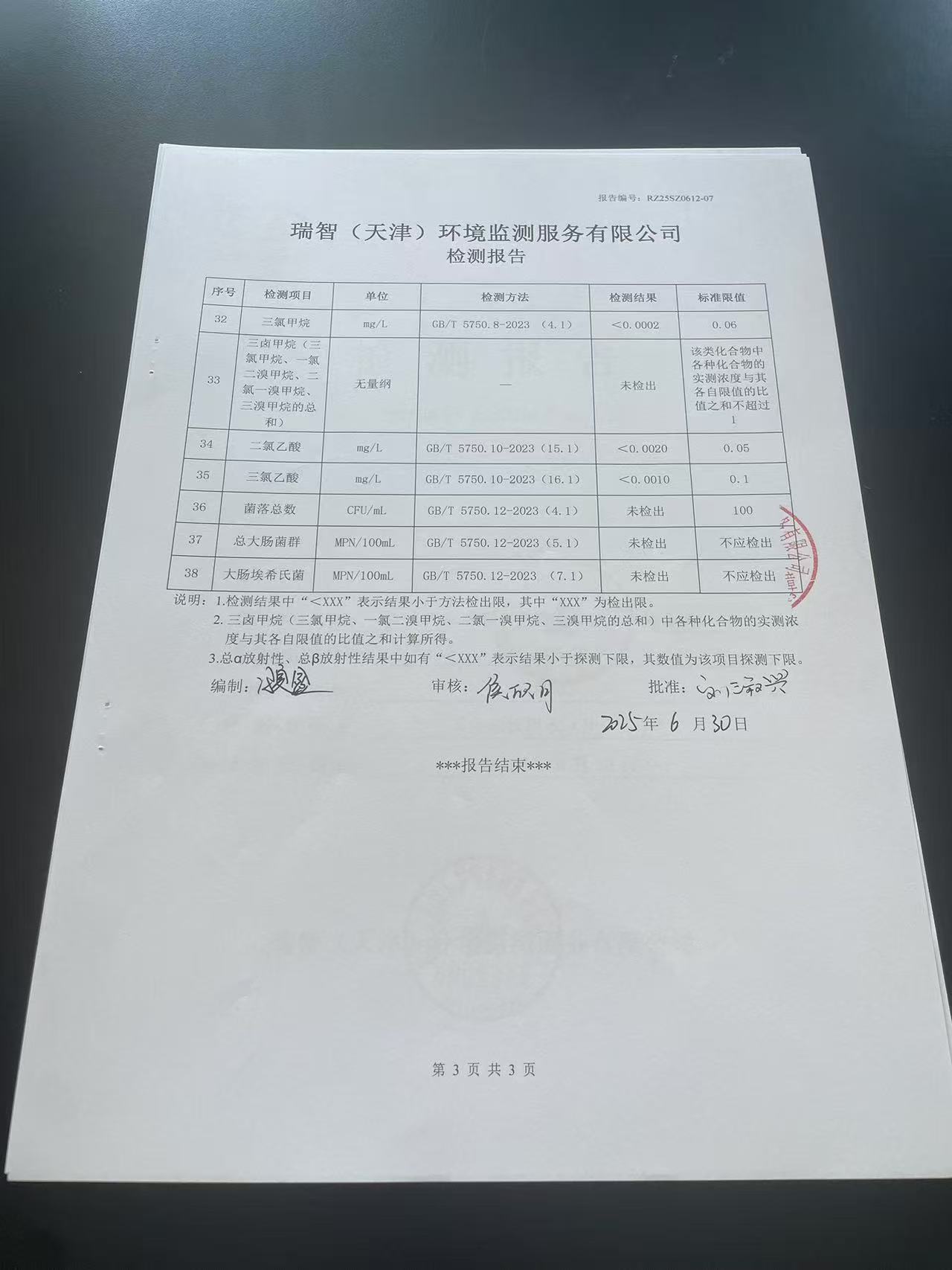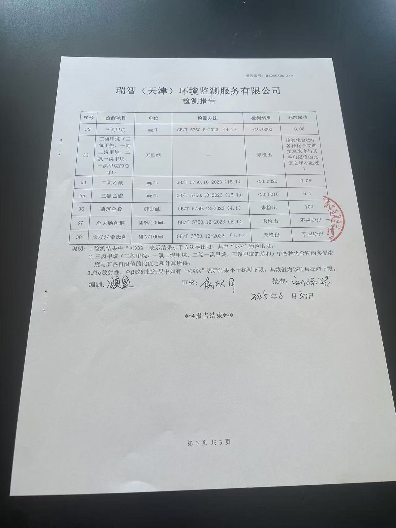 2025年6月份水質(zhì)檢測(cè)報(bào)告