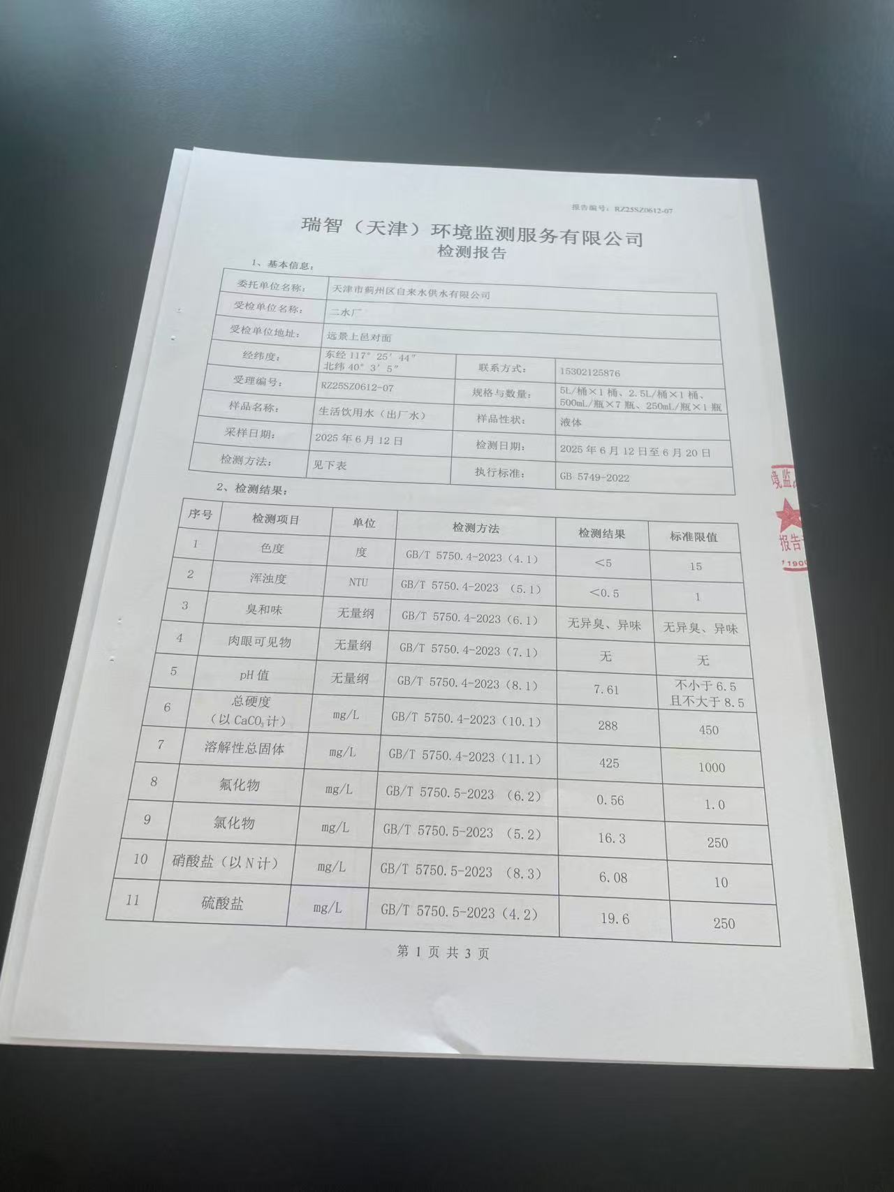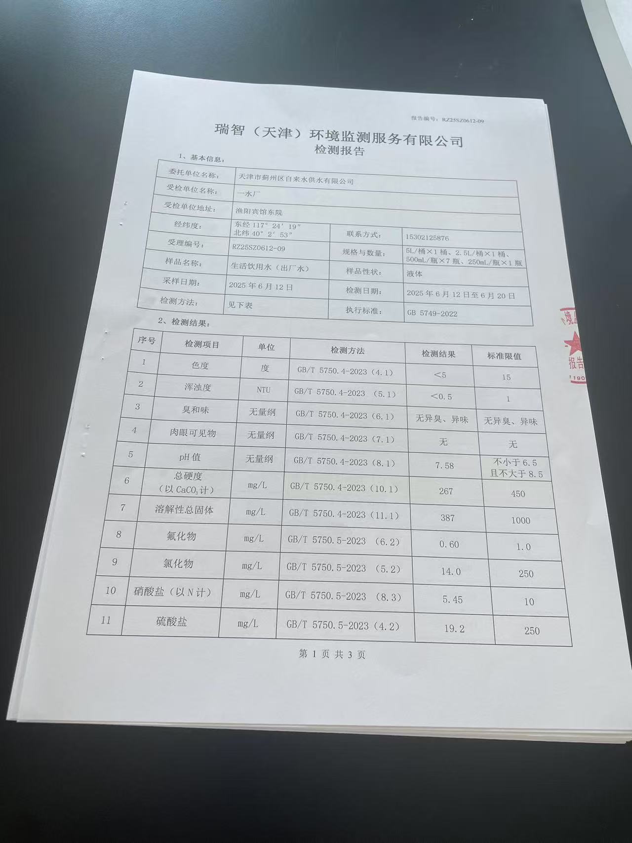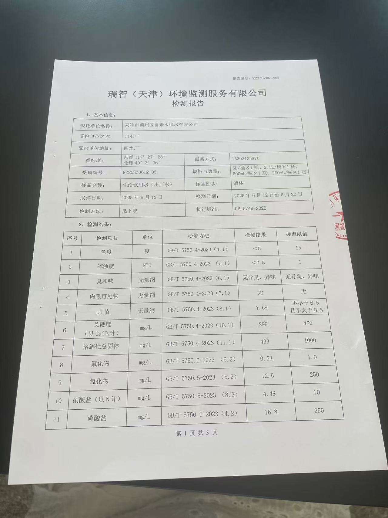 2025年6月份水質(zhì)檢測(cè)報(bào)告