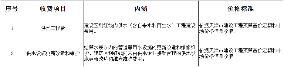 供水工程收費(fèi)項(xiàng)目清單